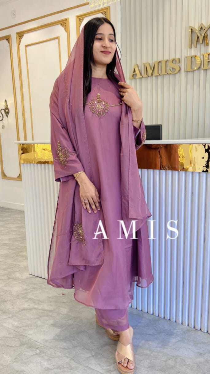 HAND WORKED SOFT ORGANZA ALINE SALWAR SET - AMIS 10064